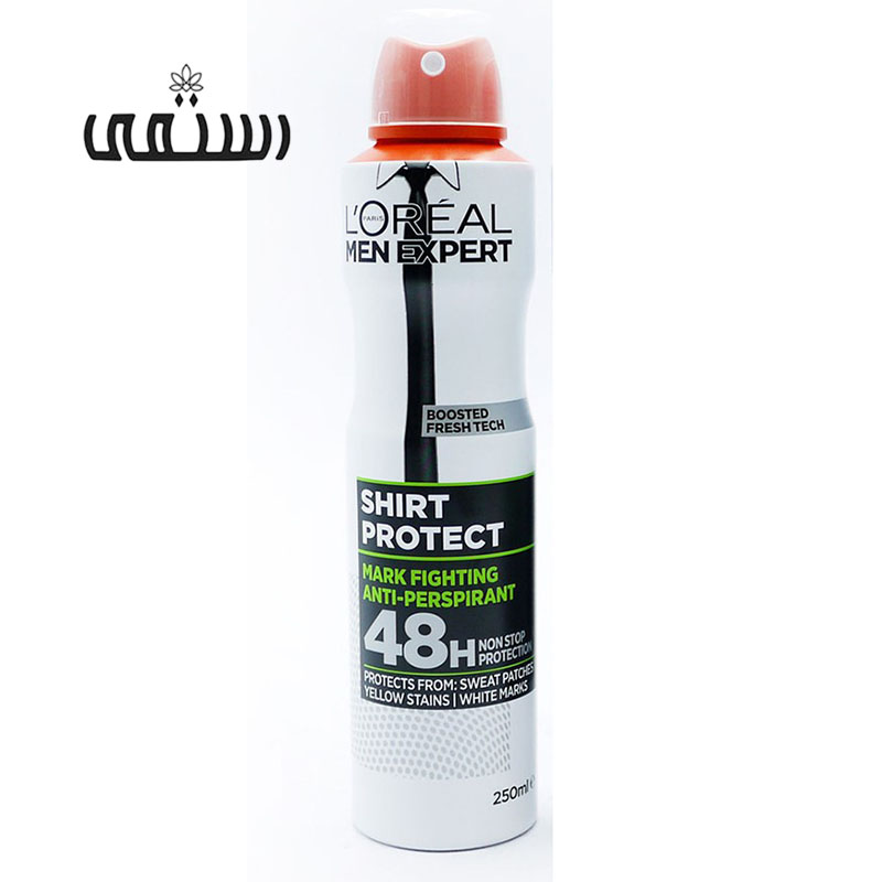 اسپری ضد تعریق مردانه لورال مدل SHIRT PROTECTLoreal Men Expert Shirt Protect 48HR Non stop Protection